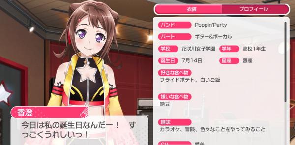 高校に入学し赤いギター「ランダムスター」と市ヶ谷有咲に出会い、花園たえ、山吹沙綾、牛込りみとの出会ってから、音楽バンド「Poppin’Party」を組む。