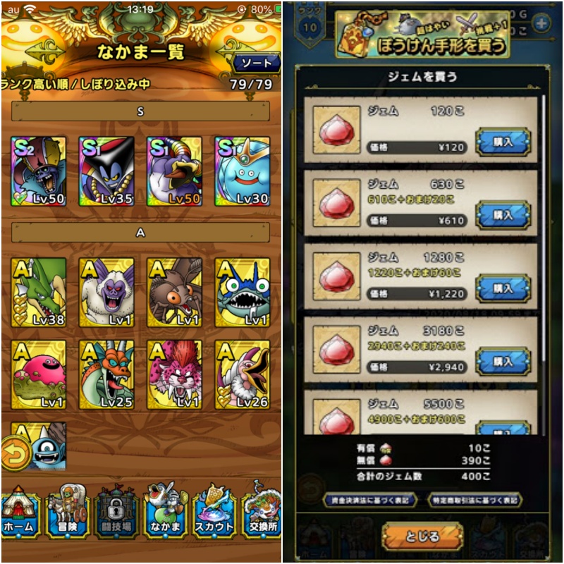今作では課金することでジェムぼうけん手形を購入することができるがそれぞれ用途は変わってくる。