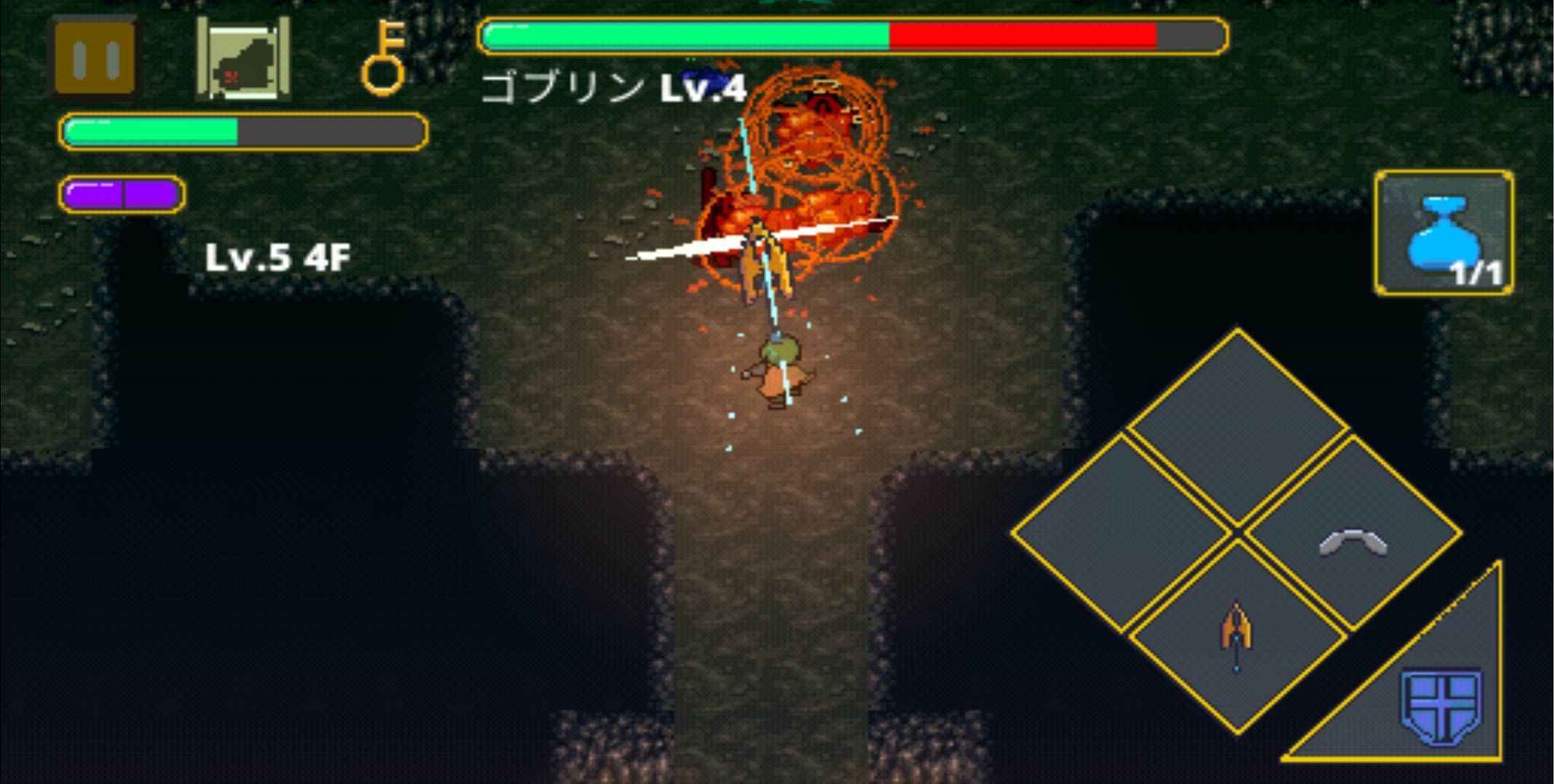 ドット絵が懐かしいがとてもスピード感のある戦闘が楽しめる「迷宮伝説」。