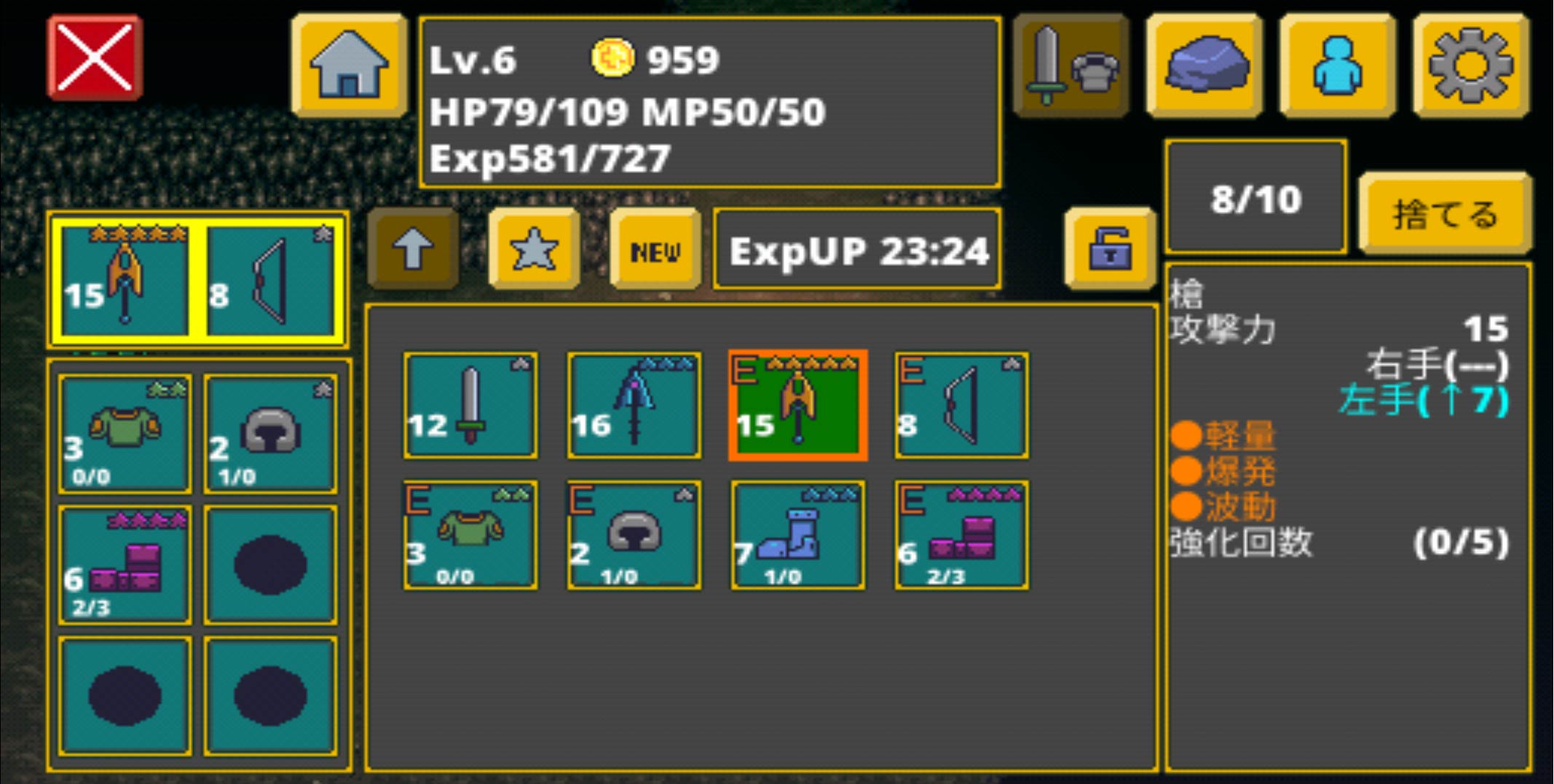 この手のゲームは強い武器が偏ったりする印象があるが、迷宮伝説はその偏りがない。