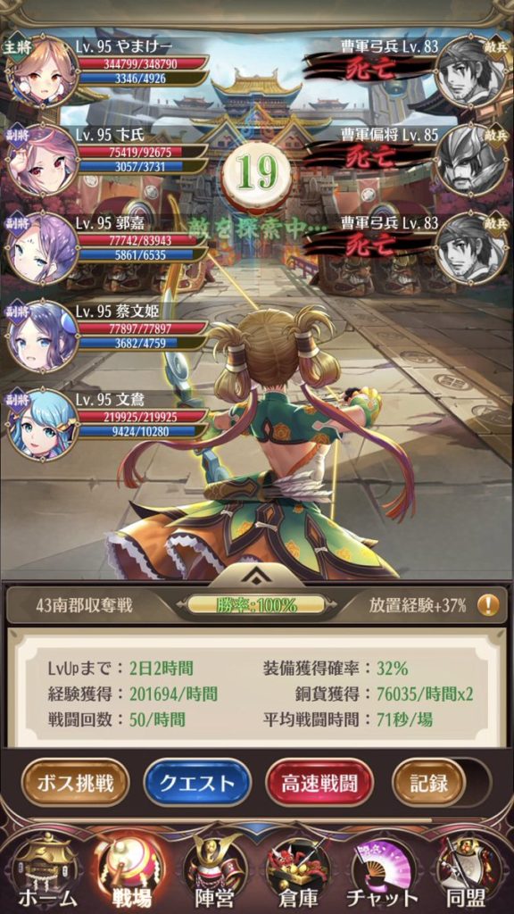 これを解決する為に、放置少女ではゲームのメインである「敵を倒してレベルアップする」という流れがとてもスムーズになっている。